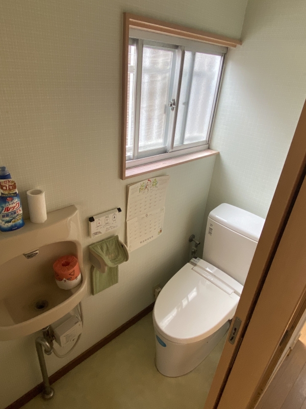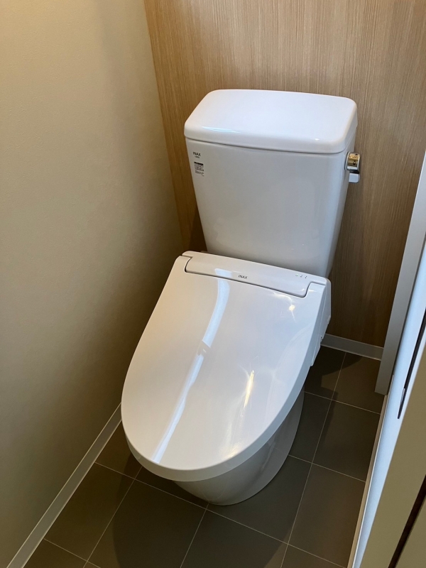 F様邸木目調とグレーのクロスのモダンなトイレ空間 相楽郡
