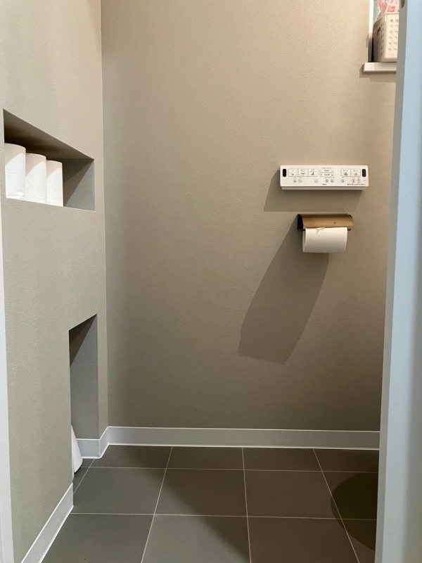 トイレ空間内にトイレットペーパーや掃除道具を入れるためのニッチ。