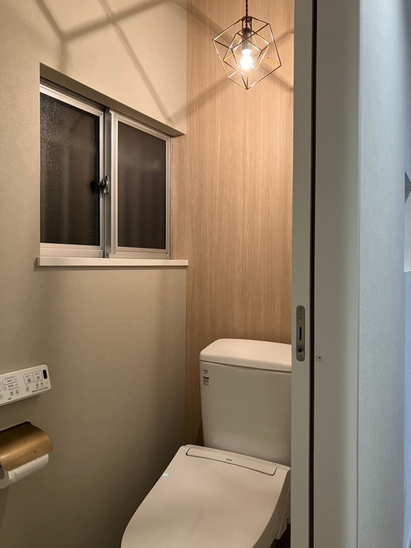 > 施工事例 木目調とグレーのクロスのモダンなトイレ空間 相楽郡