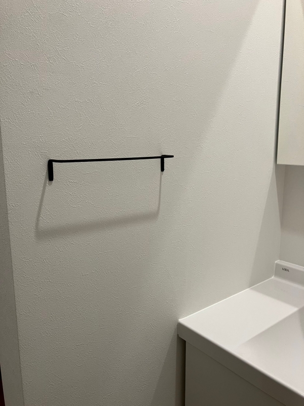 タオル掛けなども主張しないシンプルな細身のアイアン製です。