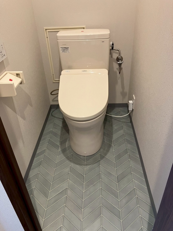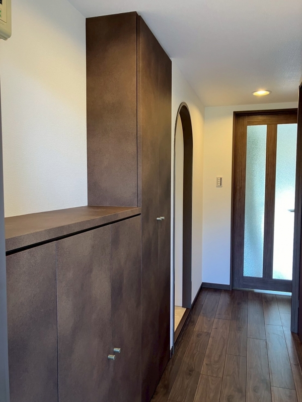 床の色目に合わせて、レザー調のシートを上から貼りました。