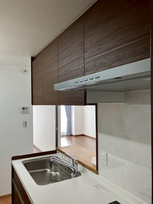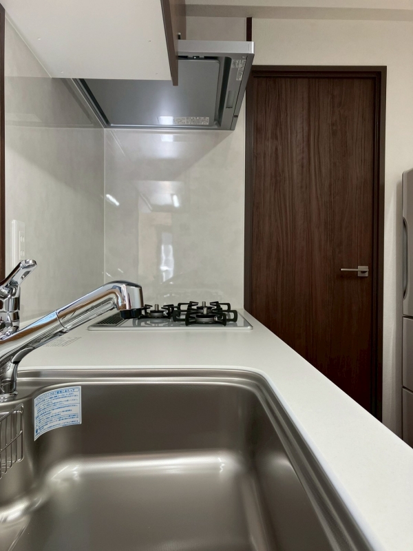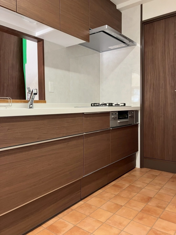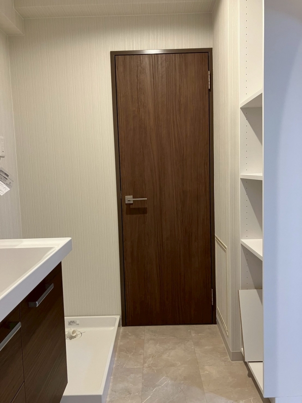空間は床も建具も、設備もダークな色目のしつらえで統一されました。