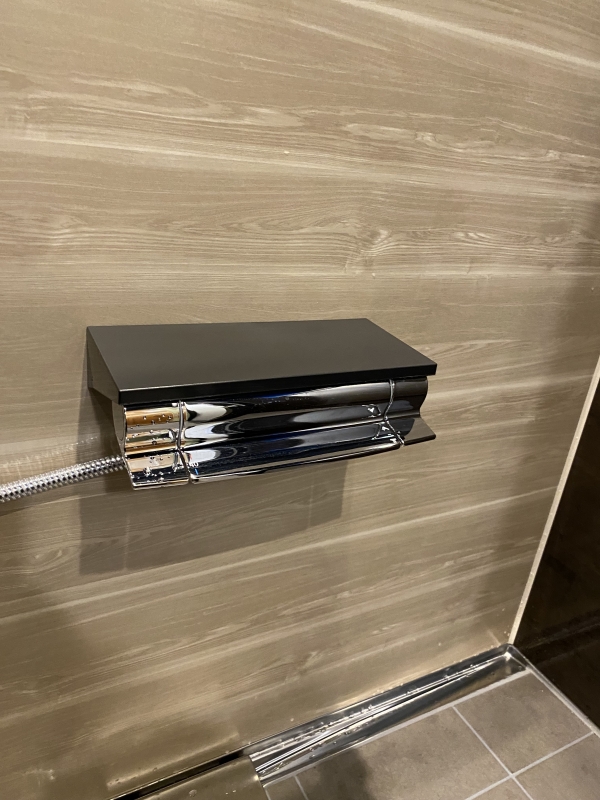 チャコールブラックの天井に合わせて浴乾もブラック仕様に。