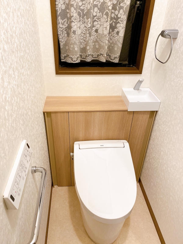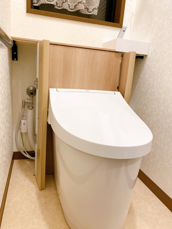 トイレ老朽化のために入れ替えをご依頼されました。 トイレ用具などを収納もできるキャビネットタイプの LIXIL Jフィットをご採用いただきました。 収納場所に困られていた空間がすっきり快適な空間に変わることができました。