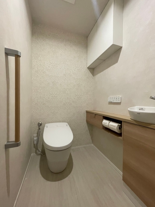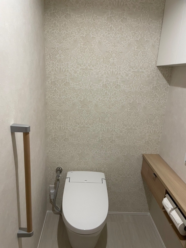 U様邸ウィリアムモリスの壁紙がアクセントのトイレ 奈良市